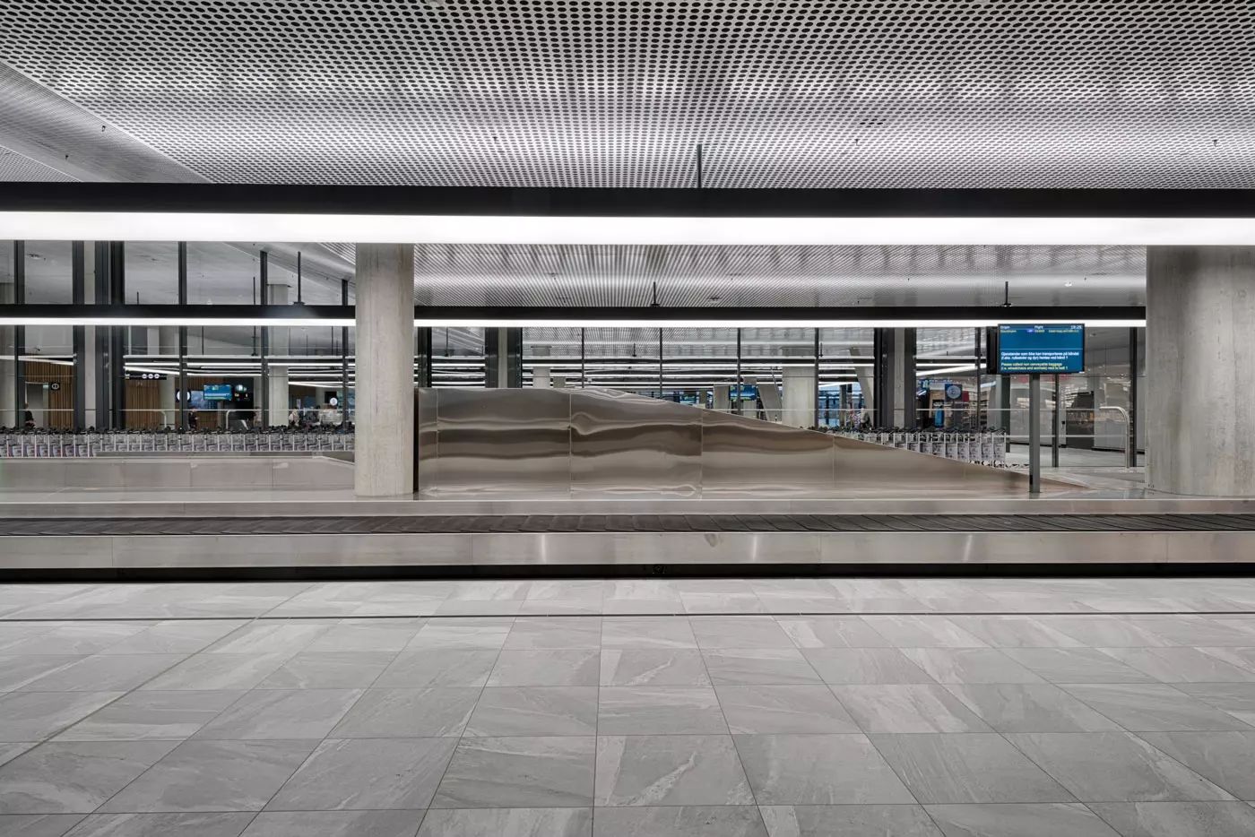 We had collaborated with Nordic Office of Architecture on several projects so when they asked for input on their industrial design, we were eager to respond to the challenge. Our job was to design a solution using extruded aluminum pieces to ensure a sound structural solution with clean aesthetics. Since the lighting spans 17 meters we contemplated having the aluminum parts delivered by ship, but that proved unnecessary. SM Lys were responsible for the lighting engineering and Nordic already had the concept design ready.