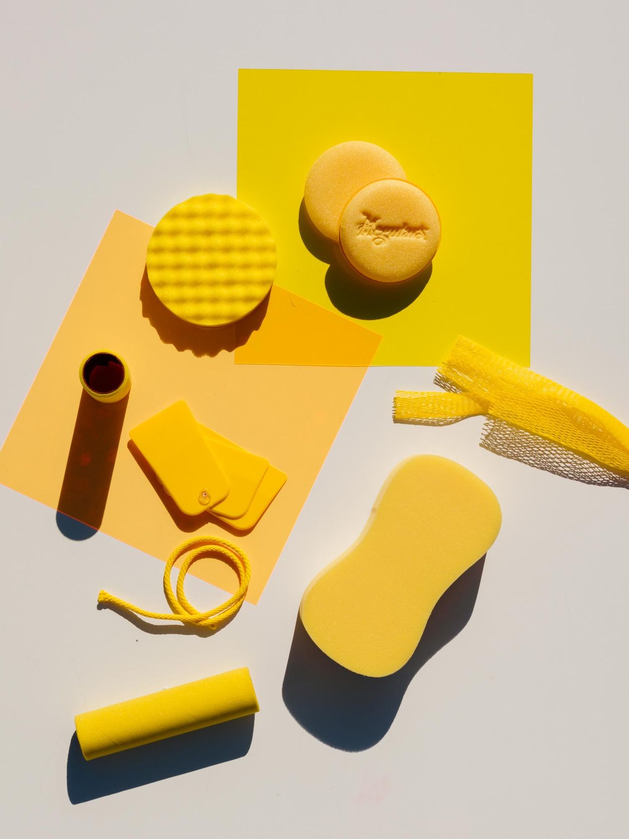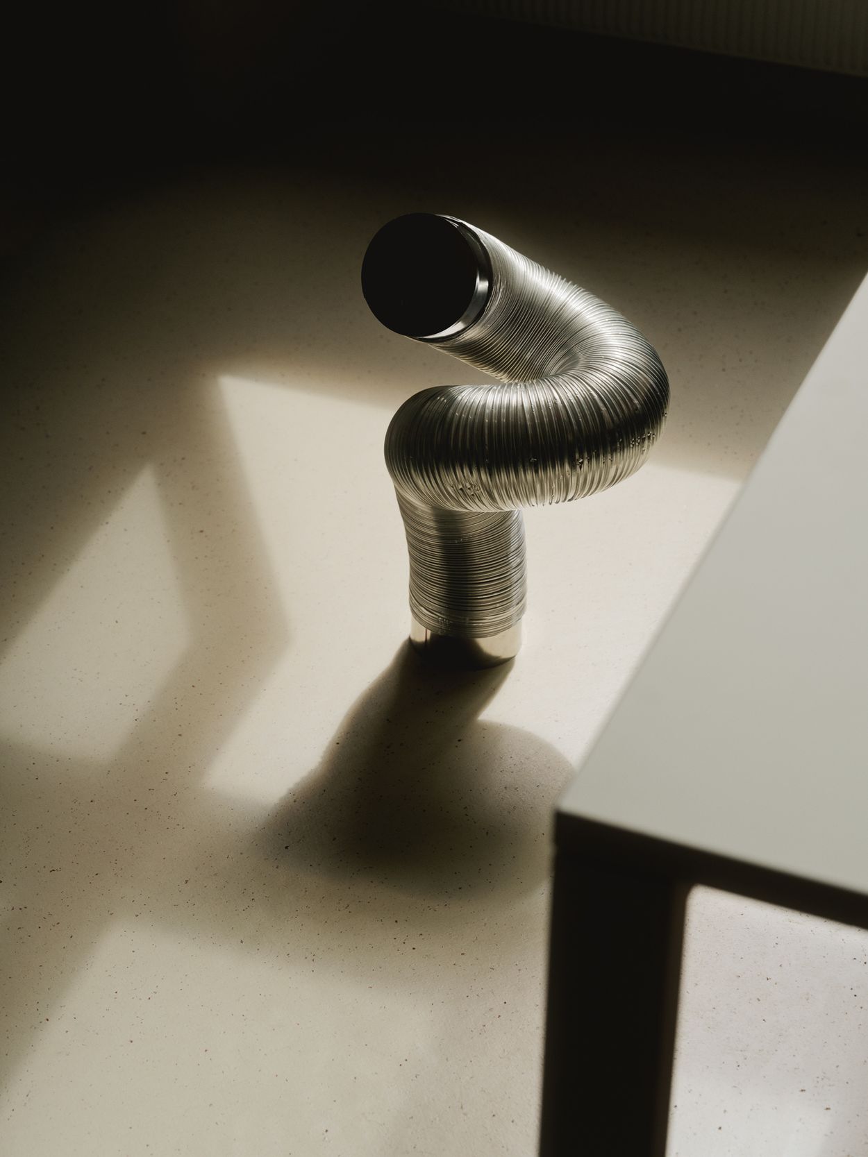 The scent disperser is made up of a ventilation duct cover and a coconut fibre body scrub, designed to be used in the shower. Drip a couple of drops of scent in the coconut fibres and the material gently disperses it. The ventilation duct raises the coconut off the surface it is placed on, letting scent pass through. At the same time the different textures of the pieces juxtapose, and the resulting profile has a creature-like expression – always a sign of success.
