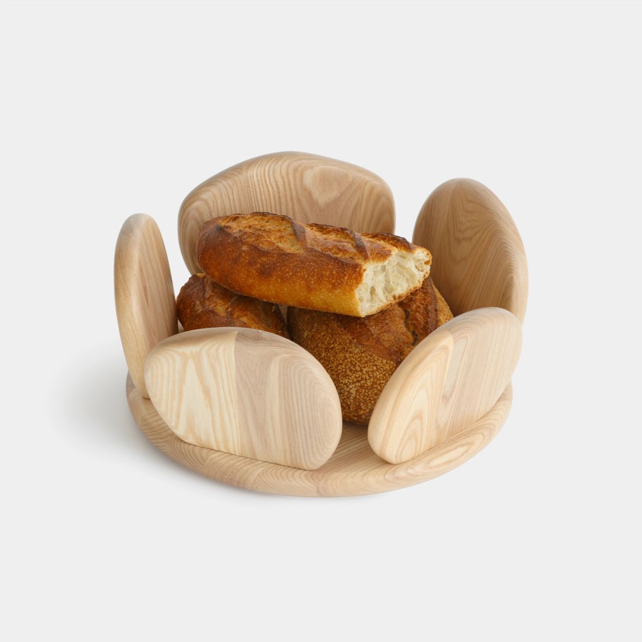 The biggest challenge with the Stonewood bowl was to translate the original design to the manufactured pieces. We liked the idea of a the bowl consisting of a series of handles, like small loafs of bread attached to the centerplate.