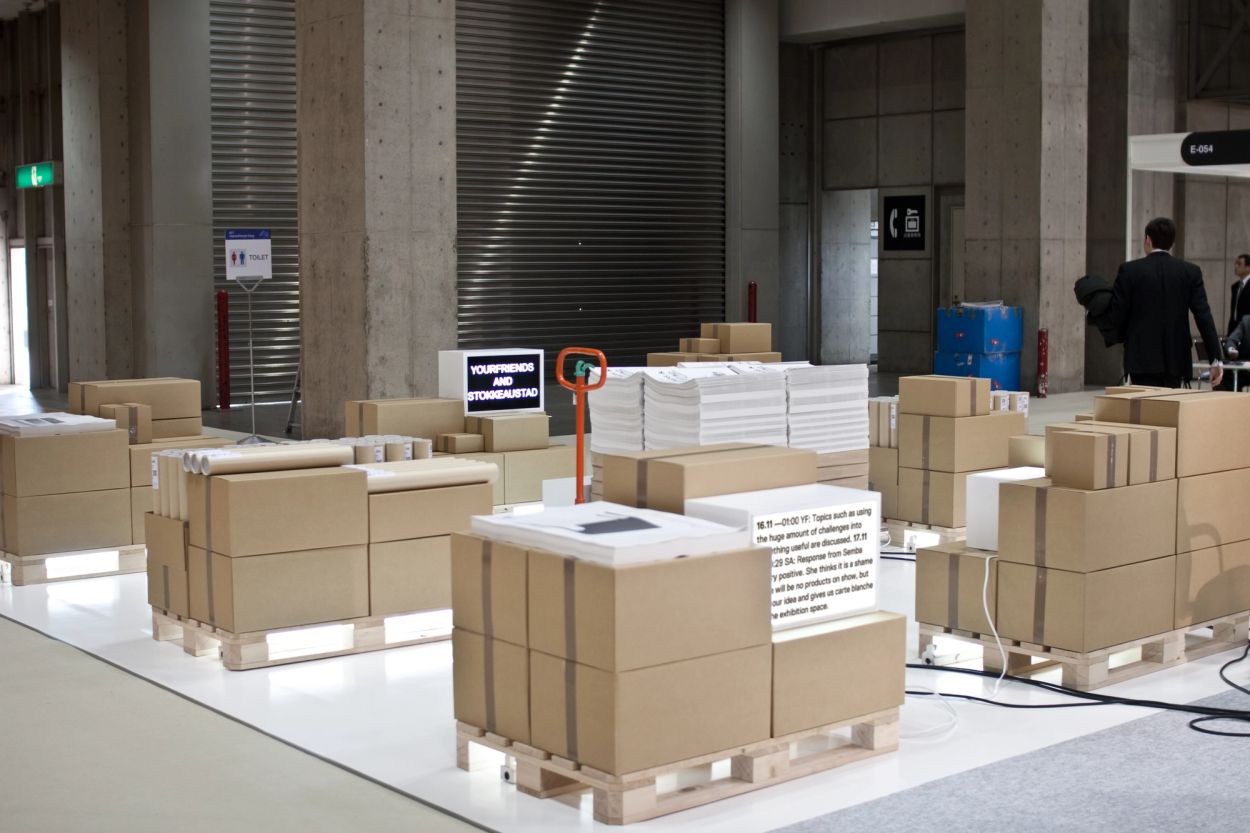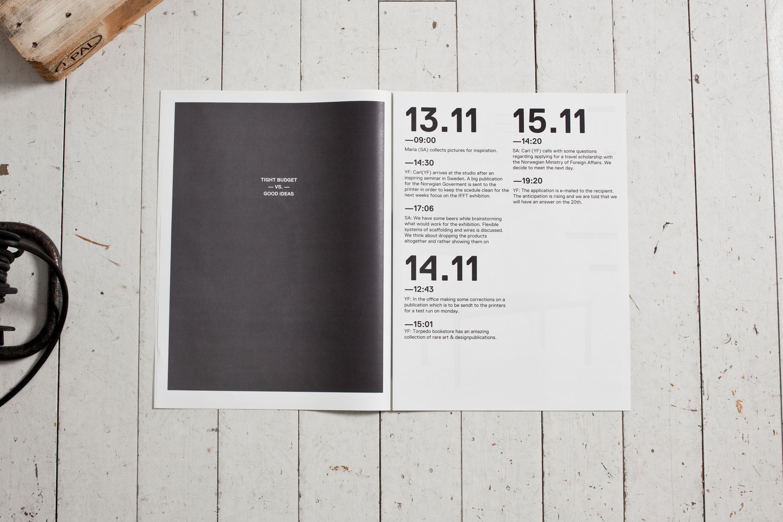 The Norwegian consulate asked us to showcase our work during the Tokyo design fair, 100% design. To reduce the impact of the exhibition, we decided to base the design on standard off-the-shelf components that could be sourced in Japan. And instead of sending the objects to be displayed, we would make a fanzine and posters documenting them. Both the posters and the journal would be handed out to the visitors, rolled up, and sealed in standard card tubes. By the end of the exhibition, the "objects" on display would be dispersed into the audience. This exhibition was the joint effort with graphic design studio Your Friends, consisting of Henrik Fjeldberg and Carl Gürgens.