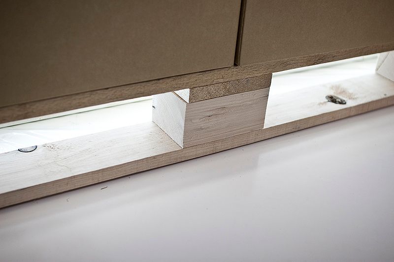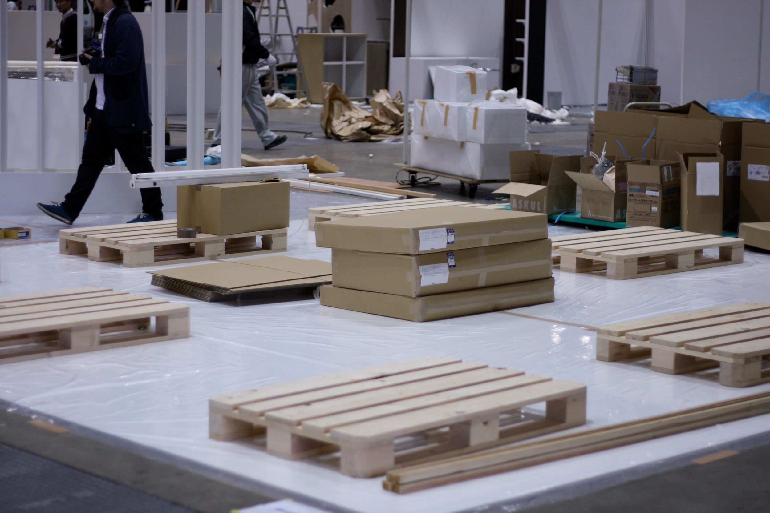 Using standard components worked brilliantly, except for one crucial mistake. For reference, we had sent the subcontractor building the stand a photo of a Euro pallet. However, due to a misunderstanding, they manufactured, impeccable pallets from scratch, complete with the chamfered corners and everything.